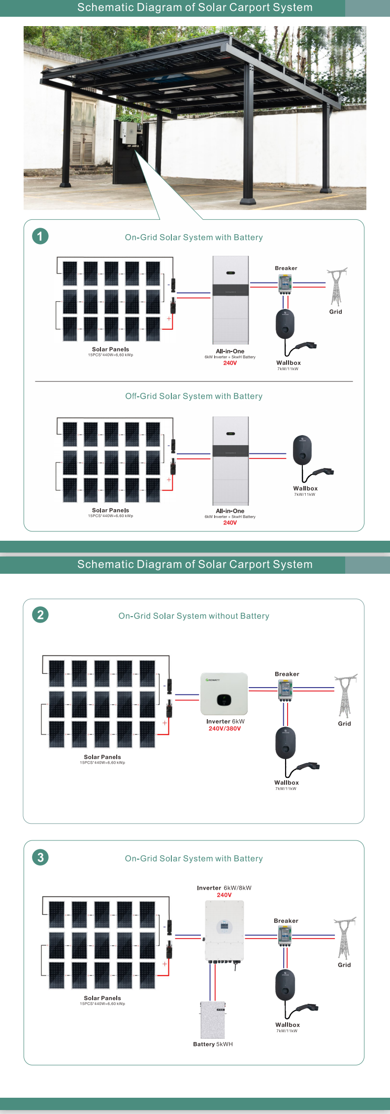 Kaksoisaurinkoparkkipaikkamme on varustettu 15 tehokkaalla 440 W:n aurinkopaneelilla,